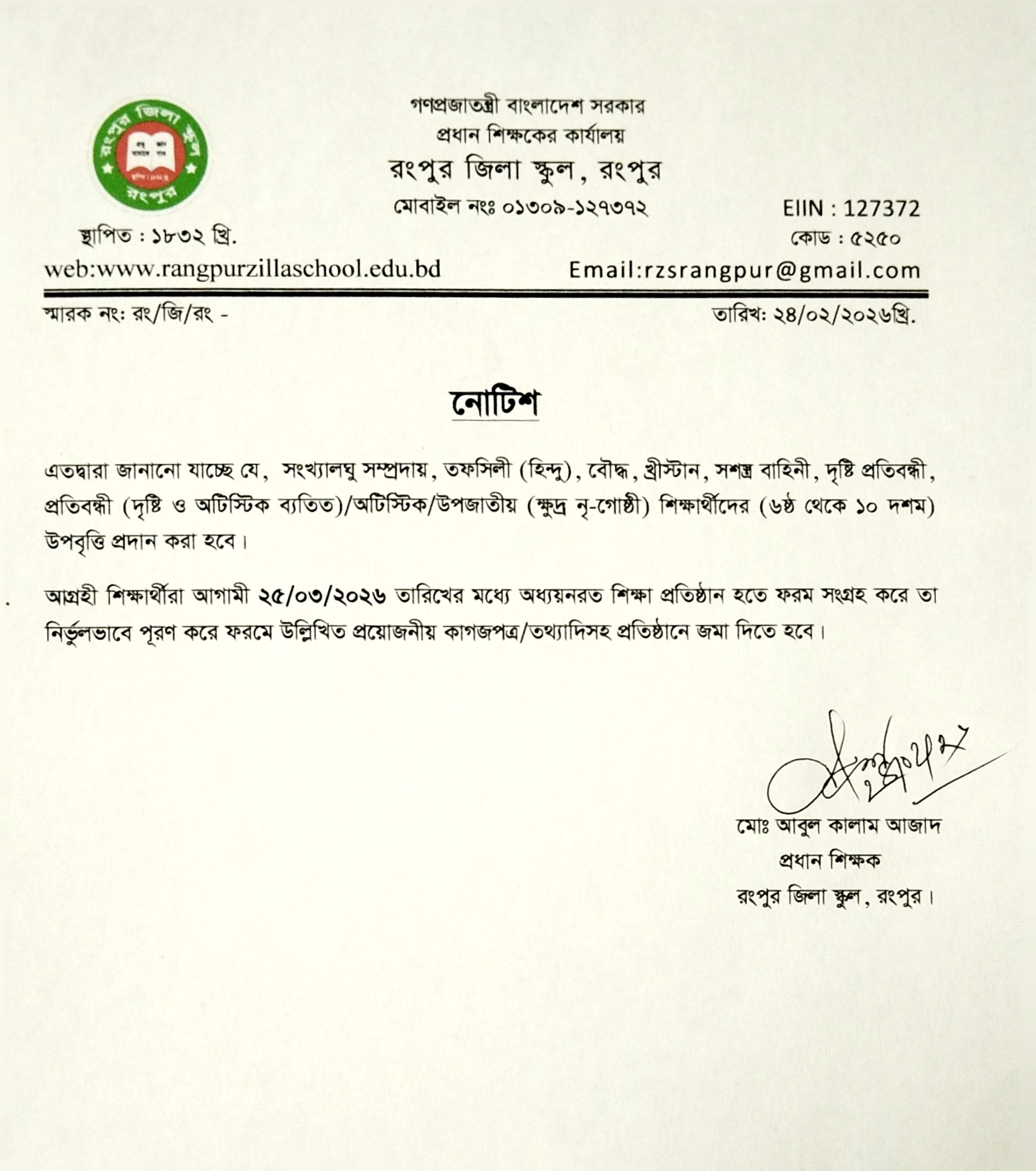 সম্প্রদায়, তফসিলী (হিন্দু), বৌদ্ধ, খ্রীস্টান, সশস্ত্র বাহিনী, দৃষ্টি প্রতিবন্ধী, প্রতিবন্ধী (দৃষ্টি ও অটিস্টিক ব্যতিত)/অটিস্টিক ও উপজাতি শিক্ষার্থীর